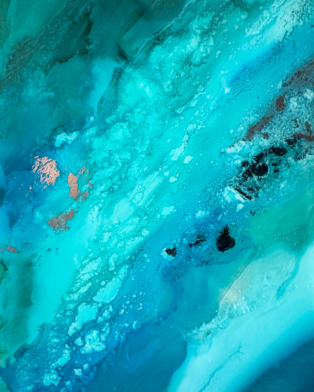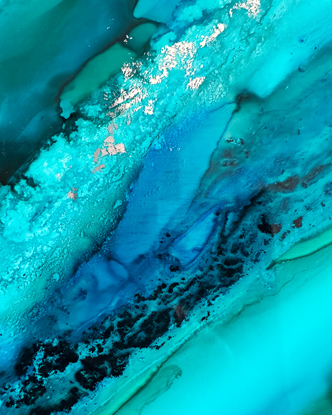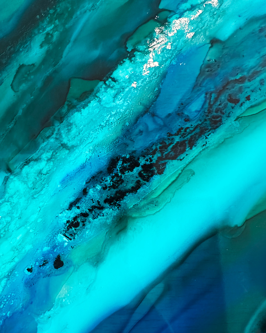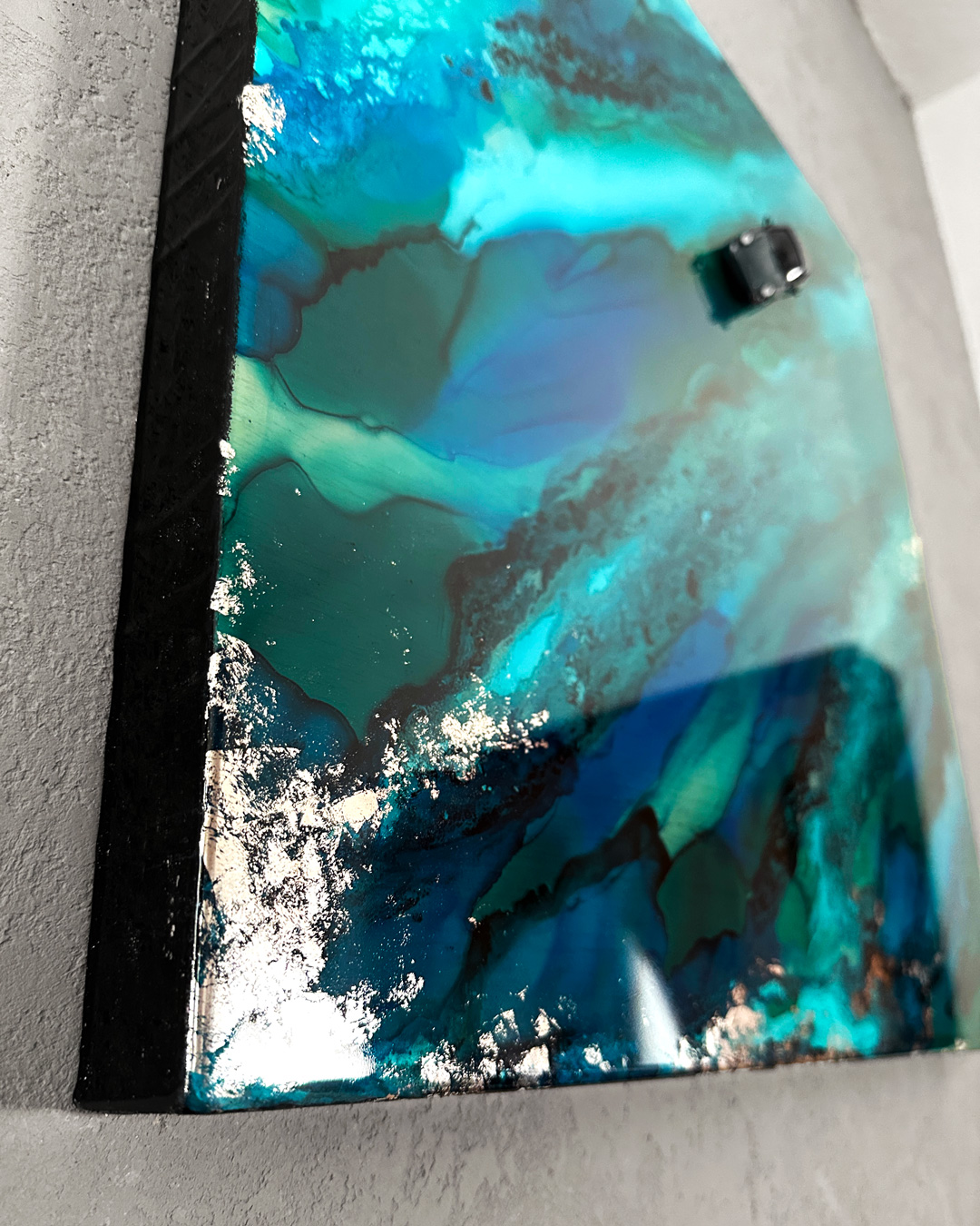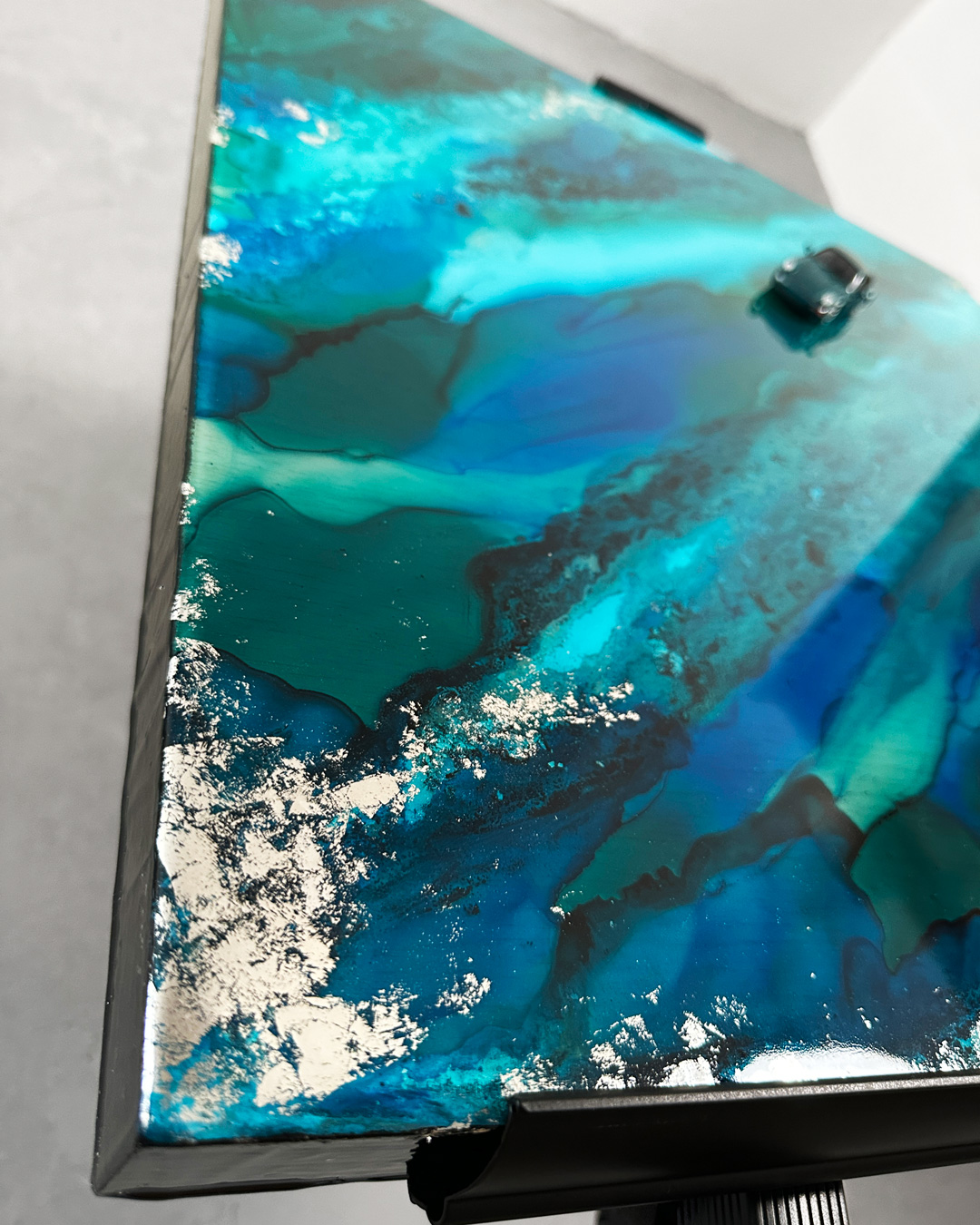 • Alkohol-Inks, Epoxidharz (Resin), echtes Blattsilber