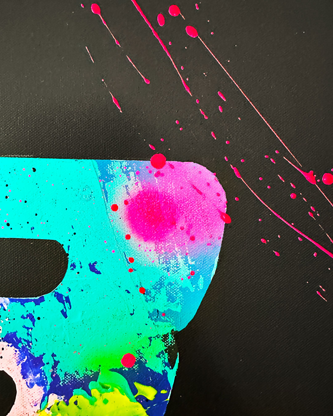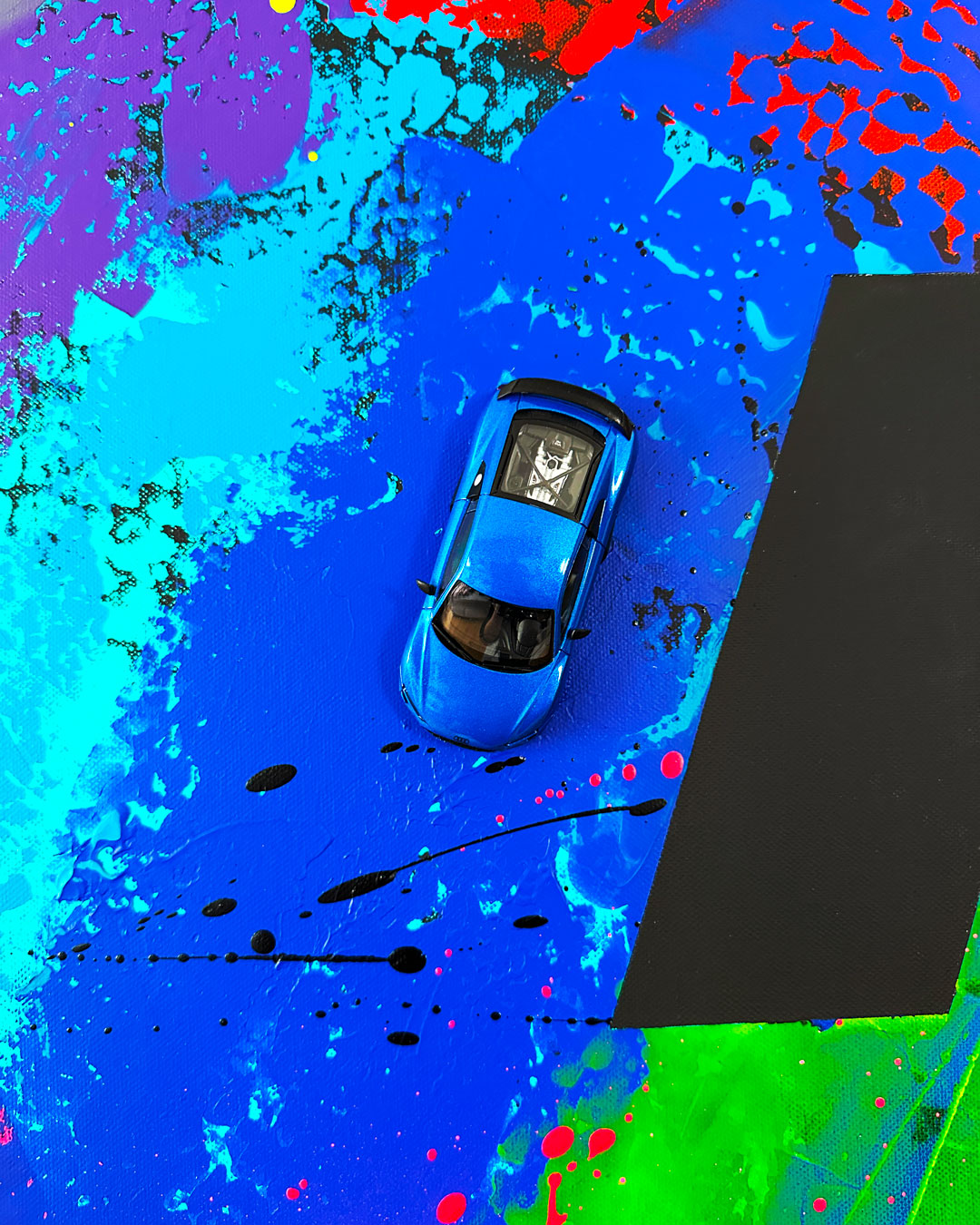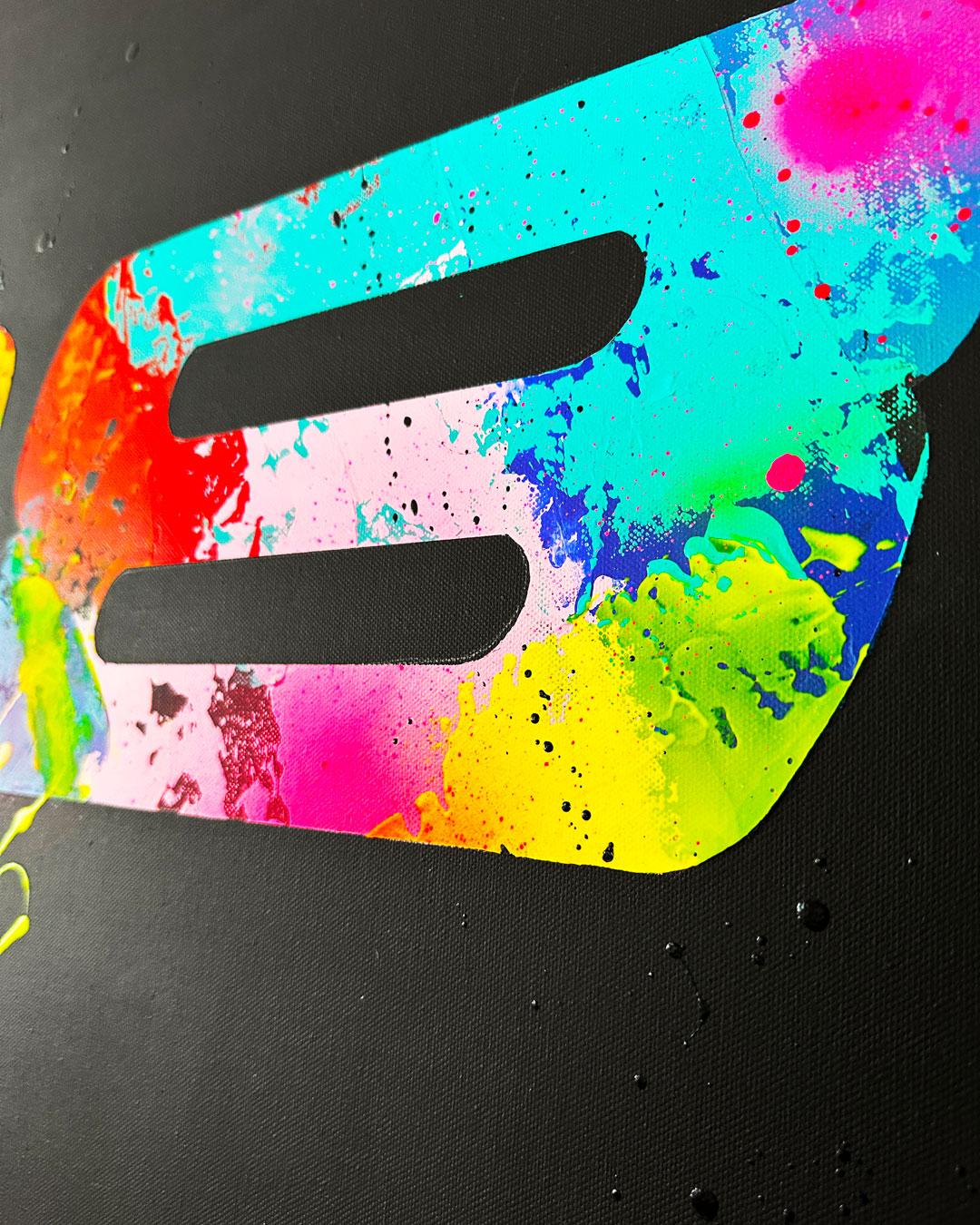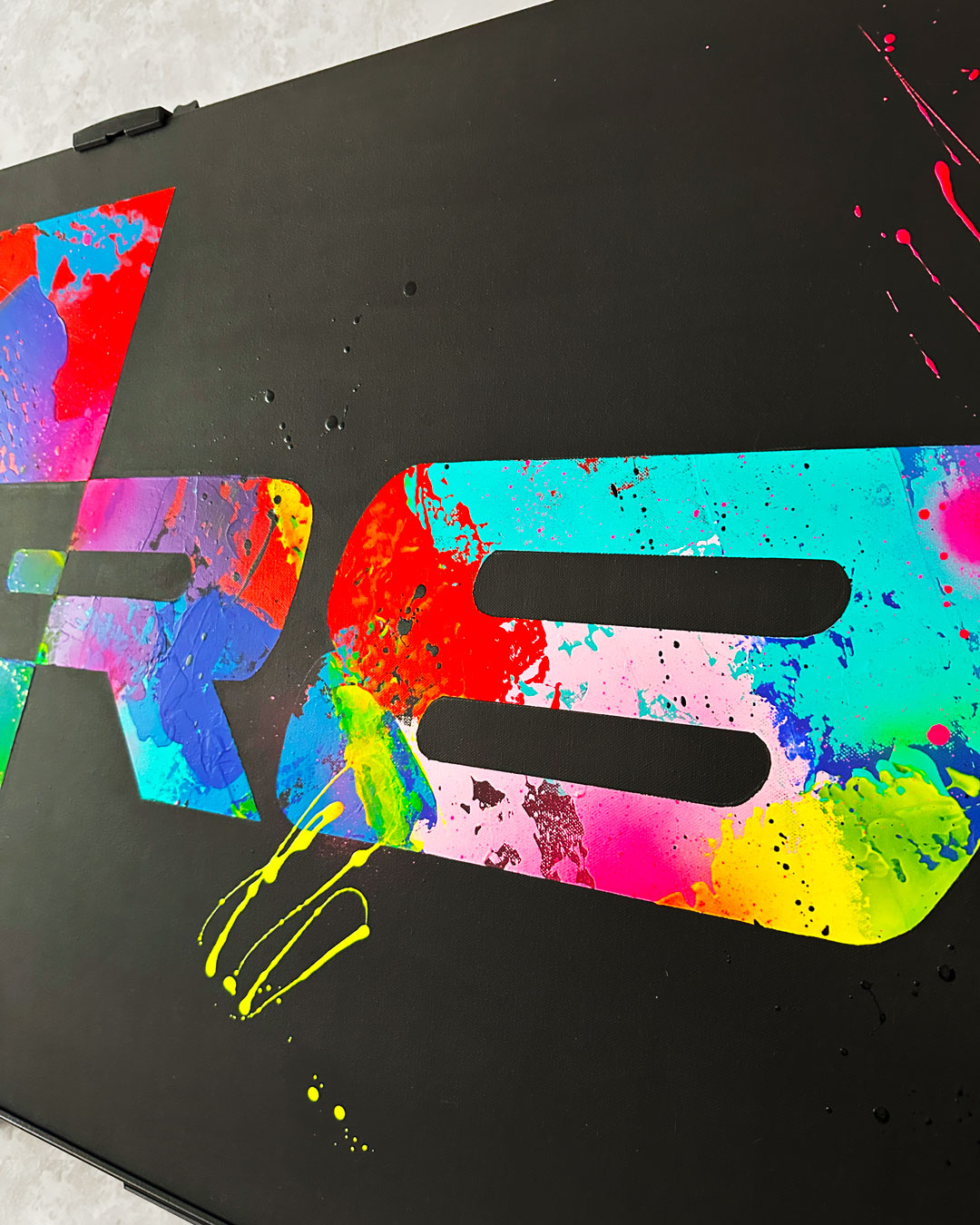 Das Acrylkunst-Projekt „Wild Eight“ ist ein modernes Kunstwerk im Format 140 × 70 cm. Dieses abstrakte Acrylbild kombiniert kraftvolle Neonfarben, dynamische Texturen und ein ikonisches Designobjekt: den Audi R8. Das charakteristische R8-Logo durchbricht ein leuchtendes Farbfeld aus Strukturpaste, Spachteltechnik und Spray – ein Spiel zwischen präziser Geometrie und freiem künstlerischem Ausdruck. Dieses Acrylbild mit Neonfarben steht für pure Energie auf Leinwand. Ein besonderes Detail: Ein integriertes Modellauto des Audi R8 im Maßstab 1:43. Es symbolisiert Geschwindigkeit, Design und Technik und verbindet so automobile Ästhetik mit moderner Acrylmalerei. „Wild Eight“ ist mehr als ein Kunstwerk – es ist eine Hommage an kraftvolle Farben, mutige Kompositionen und das Zusammenspiel von Kontrolle und Kreativität.